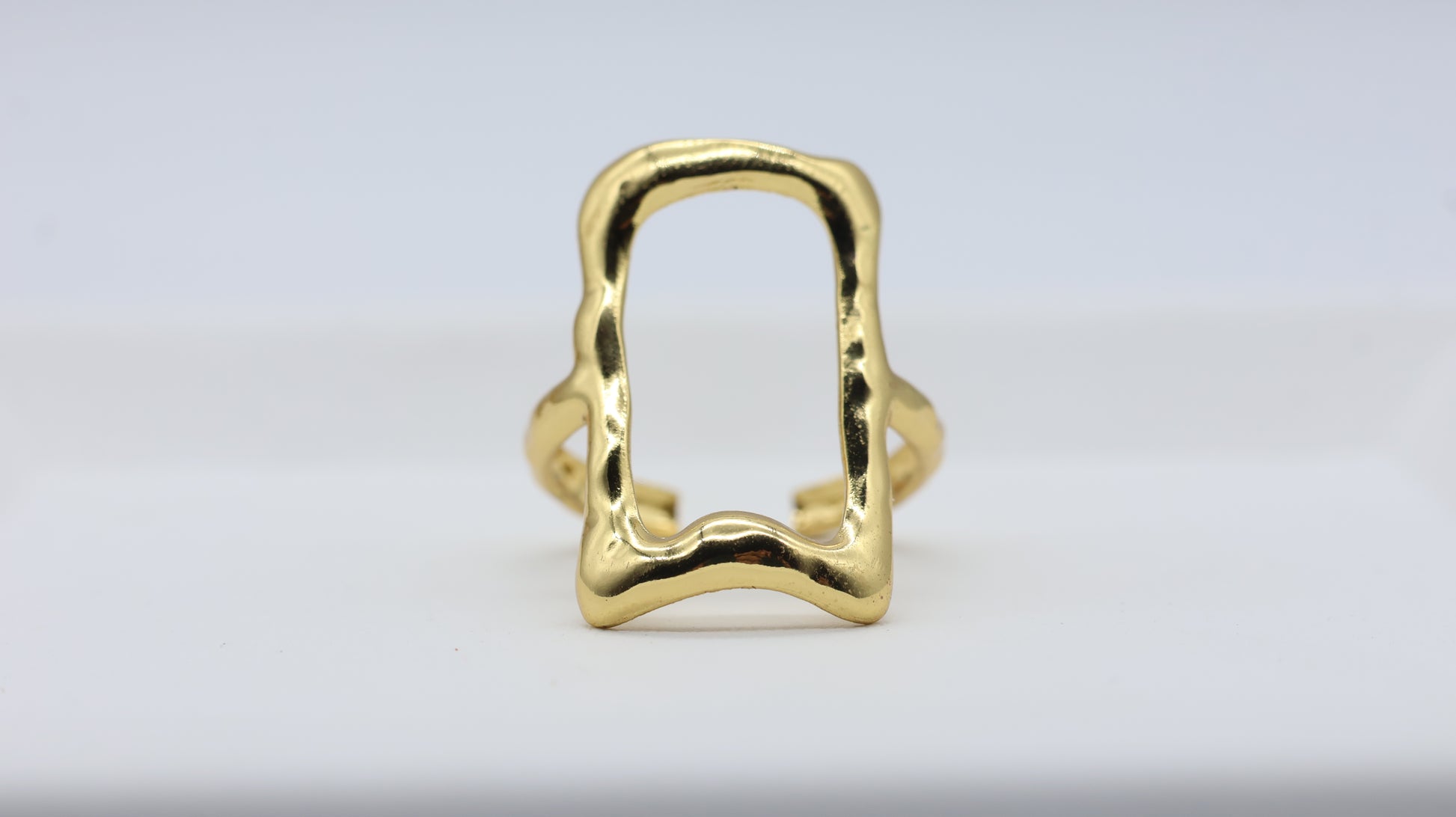 This abstract gold statement ring for women features a striking geometric open-frame design that instantly elevates any look. With its fluid yet structured silhouette, this ring blends modern minimalism with high-fashion edge.