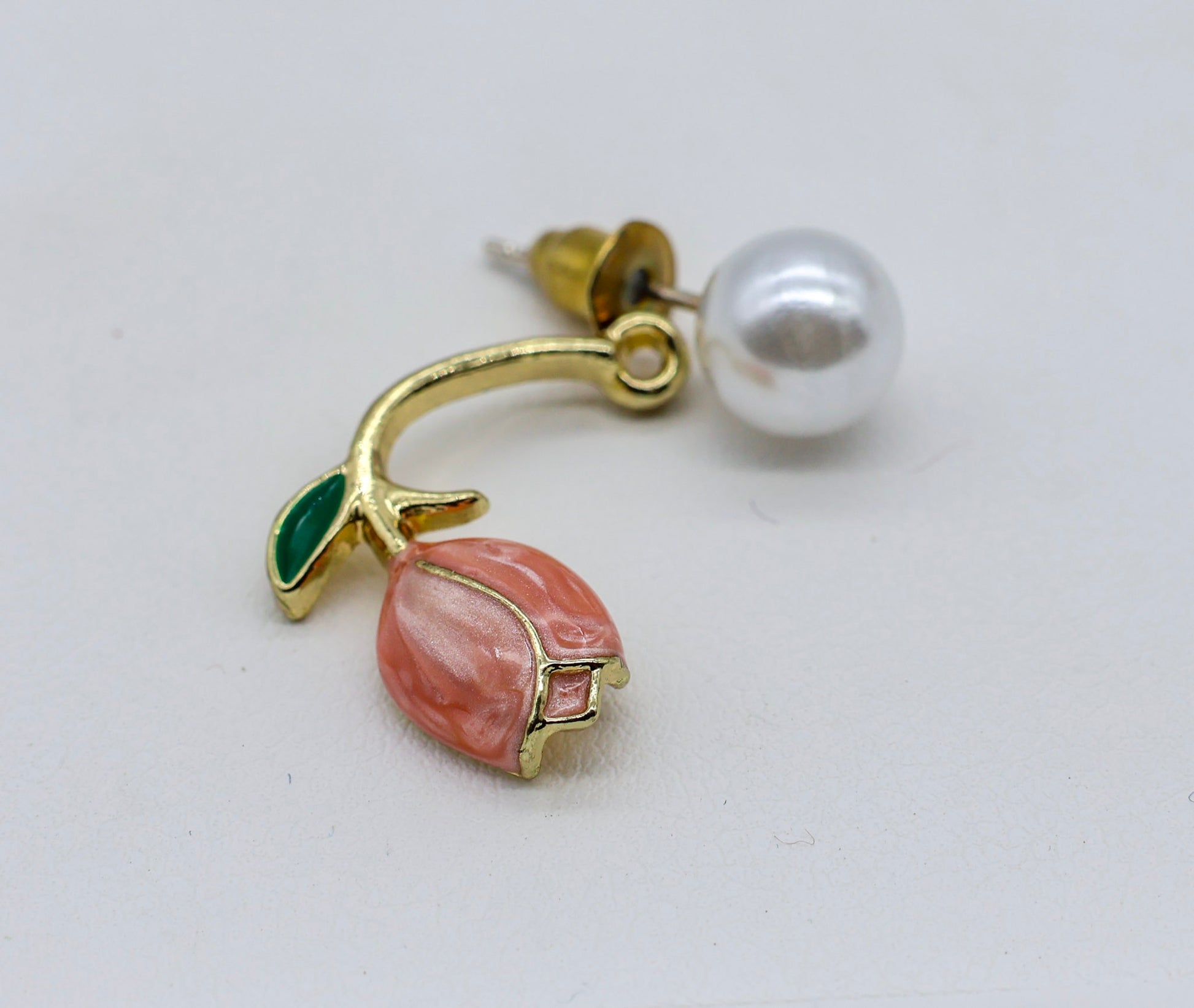 • Detail: Enamel Rose Charm | Pearl Stud